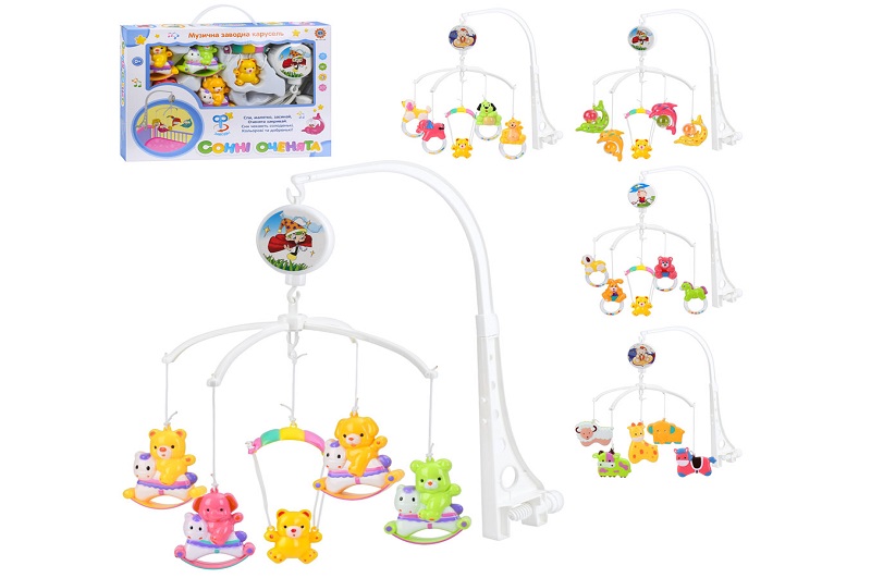 Карусель M 1177 U/R (36шт) на ліжечко, 2 види, муз, в кор-ці, 32-25-5см