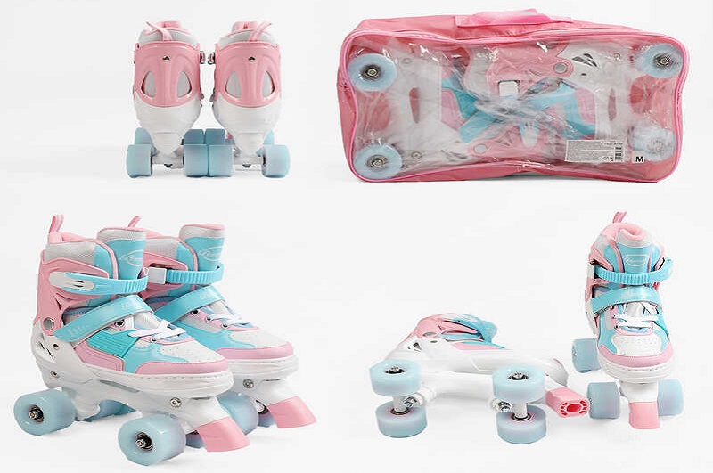 Ролики 1102-40 М розмір 34-38 (6) колір РОЖЕВИЙ, колеса PU, КОЛЕСА ЗІ СВІТЛОМ, устілка 21-23 см, d к