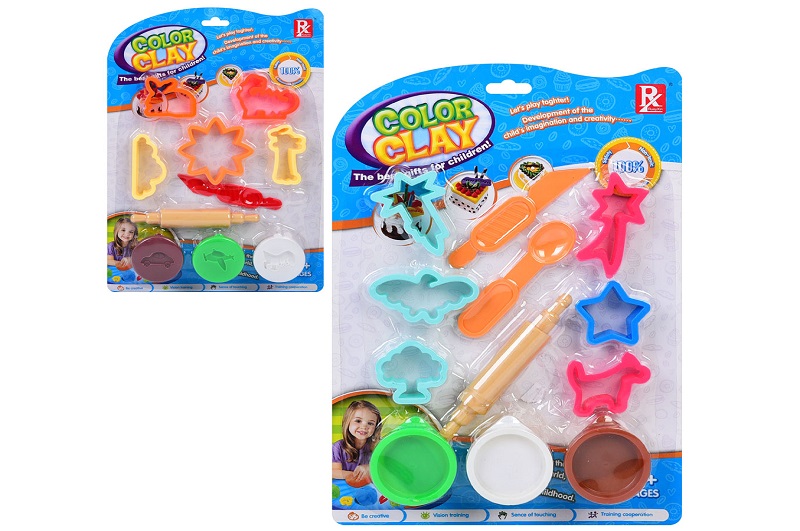 Пластилін MK 5465 (24шт) 3 кольори (баночка з кришкою), формочки, інструменти, 2 види, на листі, 21,