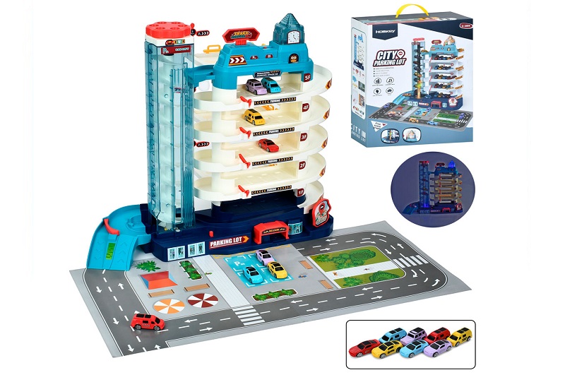 Гараж 3302A (8шт) 5поверхів, ліфт, муз, звук, світло, машинки 8шт, на бат-ці, в кор-ці, 35,5-42-16см