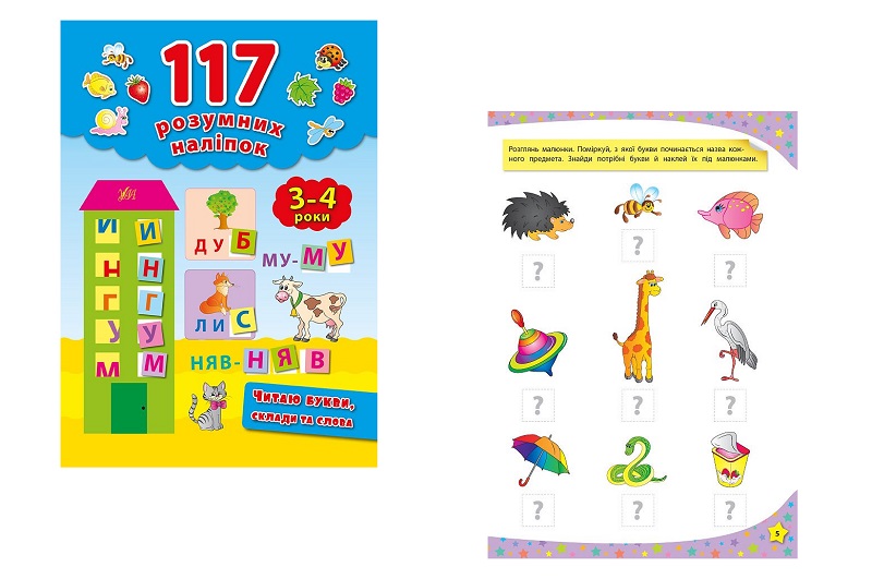 Книга 117 розумних наліпок.Читаю букви, склади та слова. 3-4 роки 01142