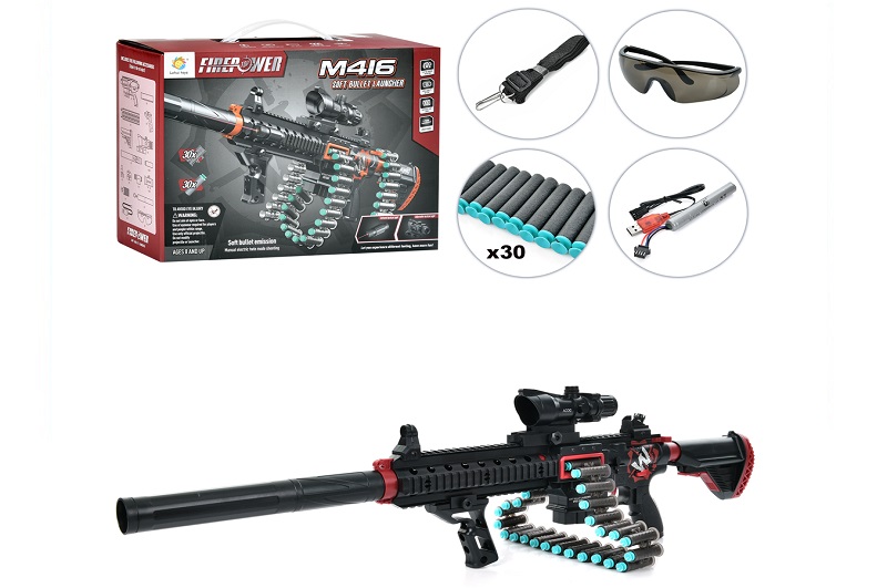 Автомат M663 (8шт) 91,5см, акум, м'які кулі-присоски 30шт,прицел, лазер, окуляри, USBзарядне, в кор-