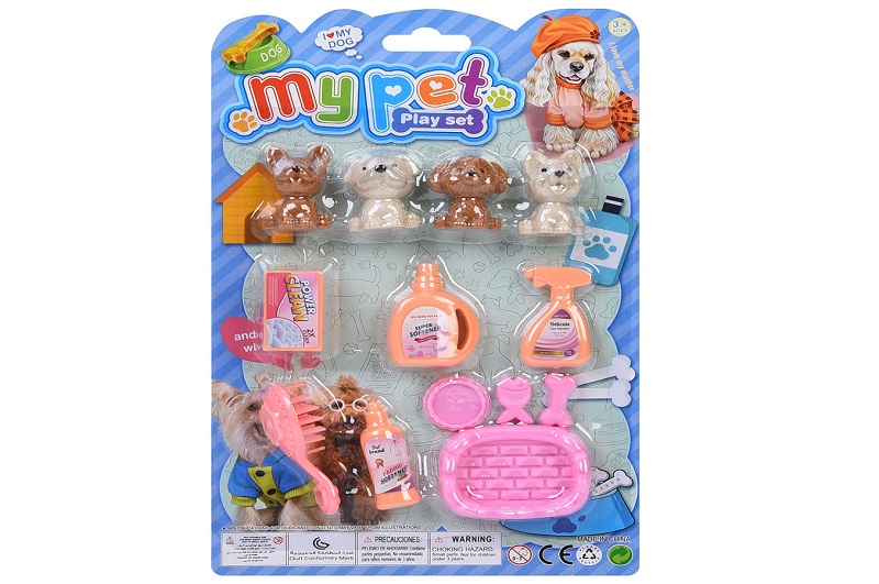 Фігурки для гри 999B-2 (224шт) набір тварин 4шт(собака) 4см, аксесуари, на листі, 15,5-25-3см