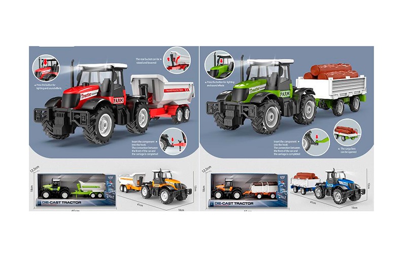 Трактор HT8804-10A (12шт) інерція, з причепом, 41см, звук, 2 види по 2 кольори, бат(табл), в кор-ці,