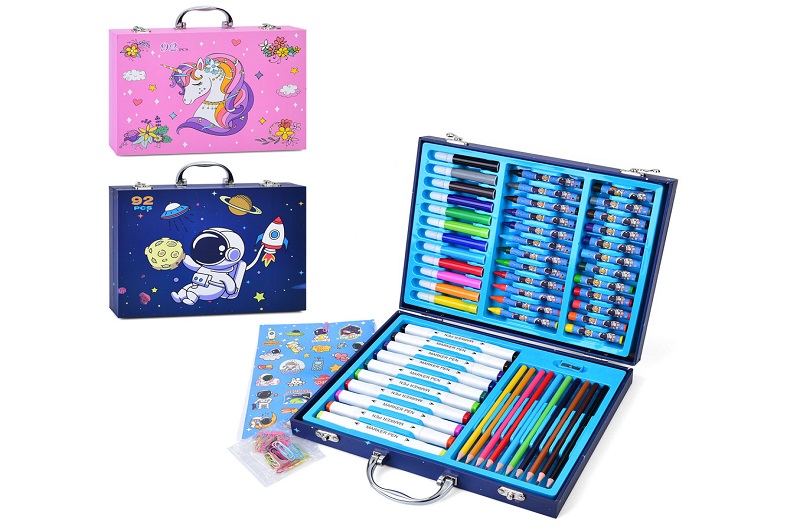 Набір для творчості MK 5442 (12шт) 92 предм, олівці, фломастери, наліпки, віск.крейда, скріпки, 2 ви