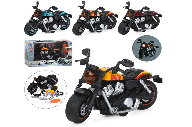 Конструктор 8080P-9-10-11-12 (48шт) на шурупах, мотоцикл, 21см, інерц, музика, світло, викрутка, 4 в