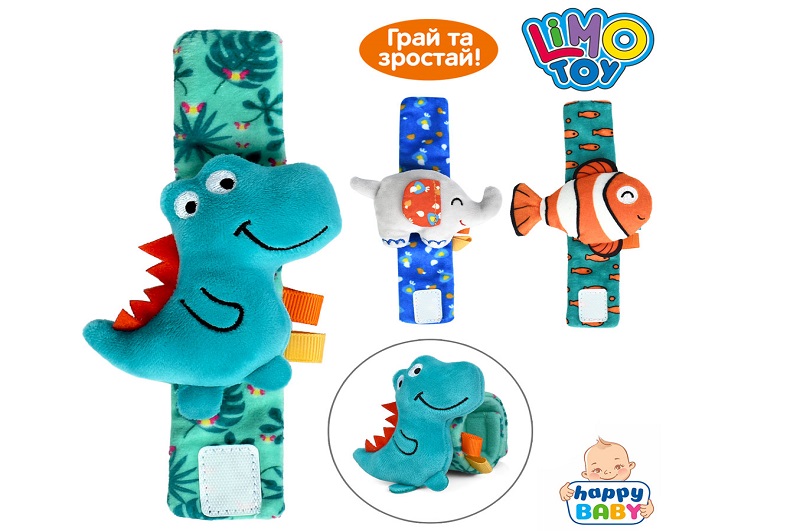 128.44 грнБрязкальце на руку HB 0108 ABC (90шт) браслет, 16см, застібка-липучка, брязкальце, плюш, 3 види(дино