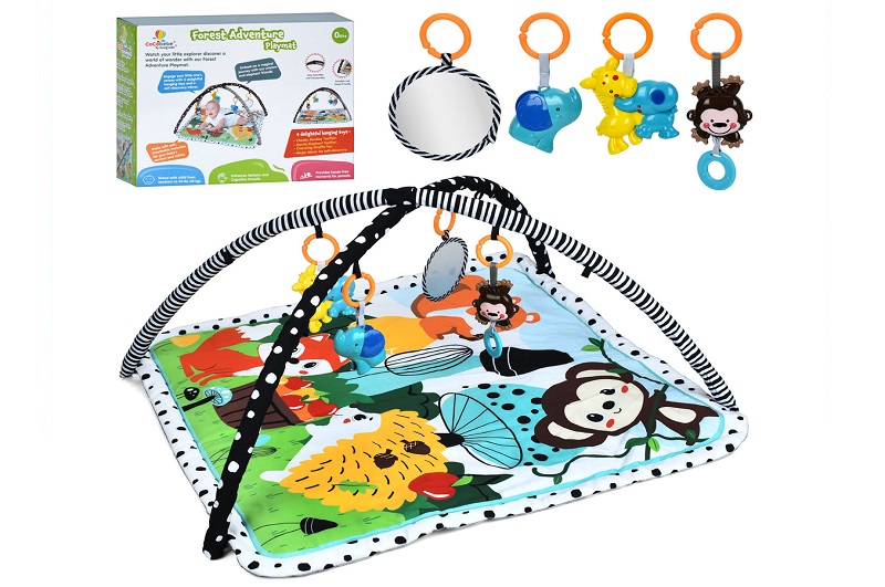 Килимок для немовляти 63636 (6шт) 85-85см, дуга 2шт, підвіски 4шт (3шт тварини-брязкальце, 1шт-дзерк