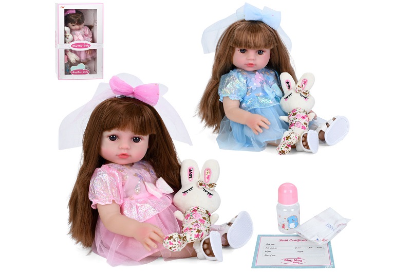 Лялька 209-89 (10шт) 45см, зайчик 25см, пляшечка, підгузок, 2 види, в кор-ці, 26,5-51,5-13см