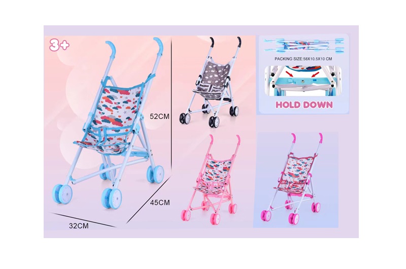 Коляска T817-1 (48шт) прогулянкова, тростина, 24-45-в52см, метал, 4 види, у пакеті, 14-63-9см