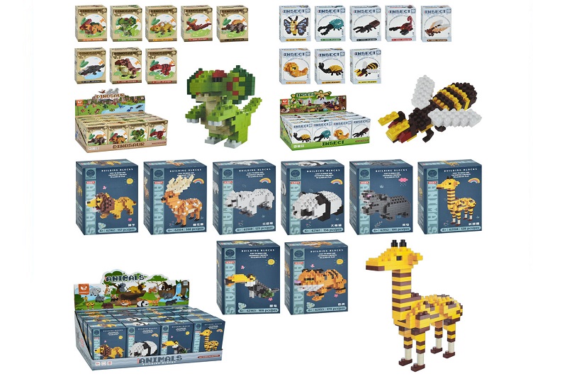 Конструктор A621-1-3-4 УПАК16шт (320шт) від 90дет, в кор-ці, 3вид диспл(динозаври,комахи, тварини),