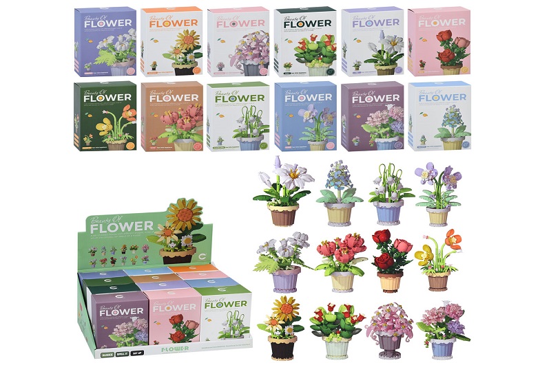 1,027.20 грнКонструктор 7219-7230 УПАК12шт (144шт) квіти у горшику, від 105дет, в кор-ці,(12 вид) в диспл, 28,5-