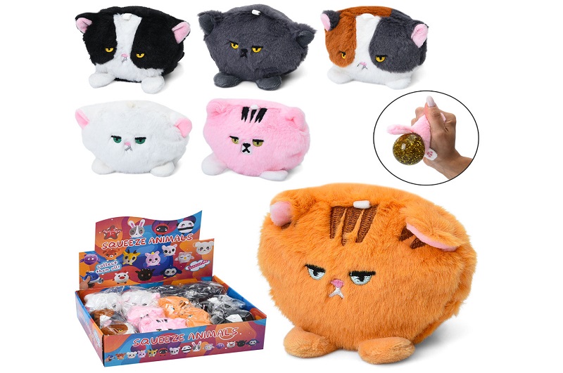 Іграшка MS 4761 УПАК12шт(72шт) кіт,8см, антистрес, плюш, рідина+блиск, у пак, 12шт(6вид) в диспл, 27