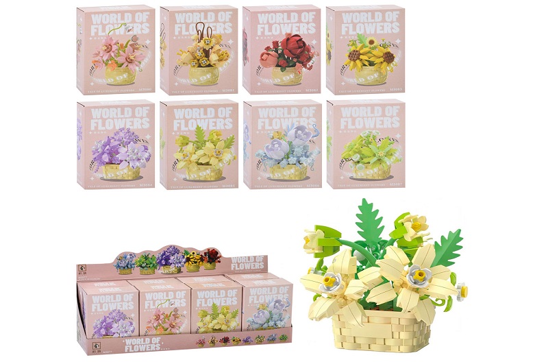 554.56 грнКонструктор M3077 УПАК8шт(144шт) квіти у горщику, в кор-ці, 8шт(8видів) в дисплеї, 47,5-16,5-10см