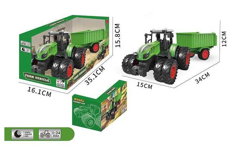 Трактор 99-77 B (30) масштаб: 1:24, причеп-самоскид, гумові колеса, рухомі елементи, в коробці