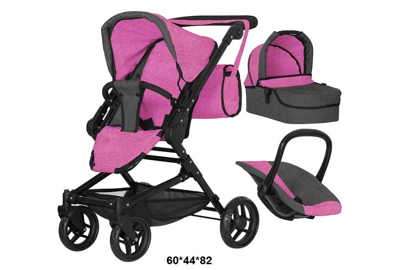 Коляска для ляльки 3в1 CARRELLO MAGIA 9636 ROSE RED з сумкою метал.кор.59,5*18,5*37,5 /1/