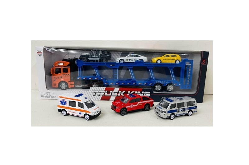 Трейлер автовоз 2212-1I метал.з машинками(6шт).кор.37*7*11 /72/