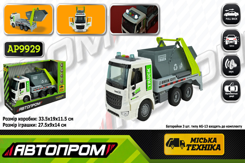 Машина батар. АВТОПРОМ арт. AP9929 (24шт/2) Сміттєвоз", світло,звук,у короб.33,5*19*11,5см"