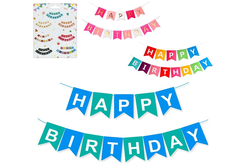 Аксесуари для свята MK 5651 (150шт) стрічка Happy Birthday, декор, 3 кольори, у пакеті, 13-18,5-0,5с