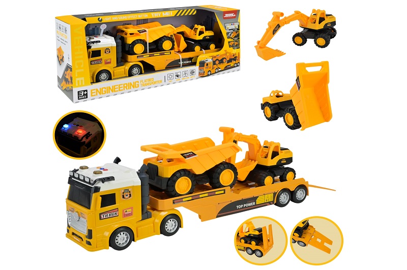 Трейлер арт. JP588-78 (12шт) батар Будтехніка, світло,звук, будівельний транспорт в наборі, короб.