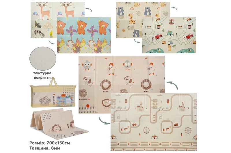 Килимок-мат MR 1570-3 (12шт) XPE, 150-200см, двосторонній, товщина 8мм, 3 види, у сумці, 75-40-10см