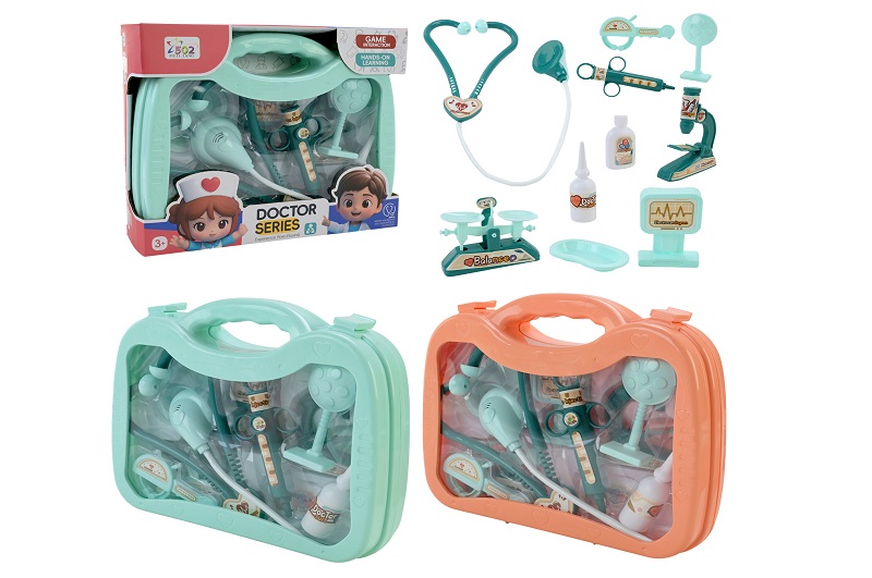 Лікар набір арт. 502-261 (72шт/2) стетоскоп, шприц, аксес валіза 2 кольори, короб. 26,5*6,5*23см