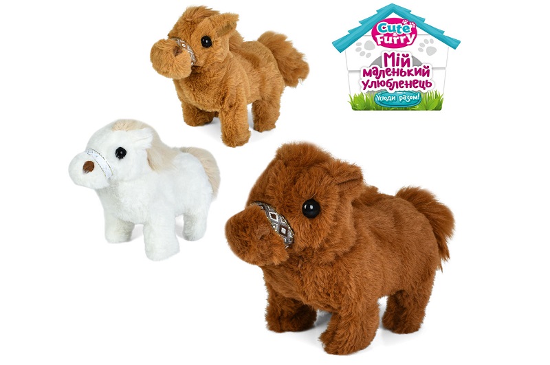М'яка іграшка YG0262 (50шт) конячка, 17-22-9см, звук, ходить, 3 кольори, на бат-ці, у пакеті