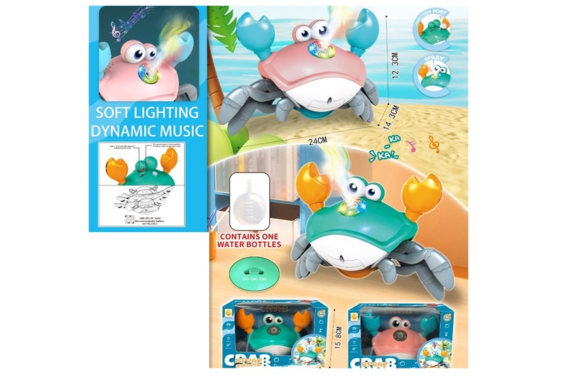 413.60 грнМузична іграшка 25004A (18шт) краб, 24см, пара/дим, музика, світло, їздить, 2 режими, 2 кольори, на