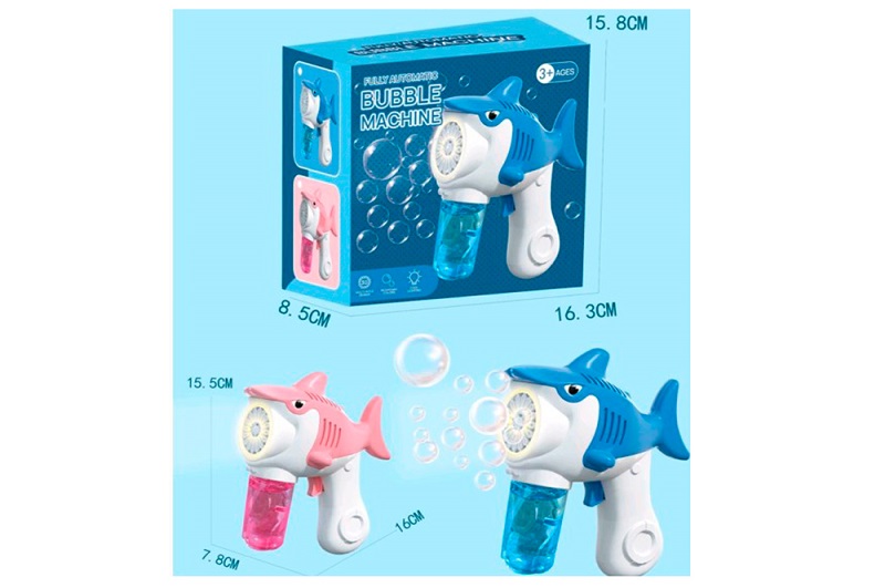 Мильні бульбашки SR8701 (48шт) пістолет-акула, 15см, світло, запаска 8-3,5см, 2 кольори, в кор-ці, 1