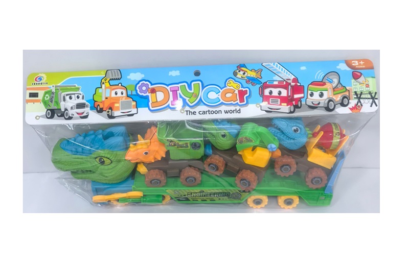 Конструктор 8886A (24шт) на шурупах, трейлер-динозавр 42см, машина-динозавр 3шт, викрутка, у пакеті,