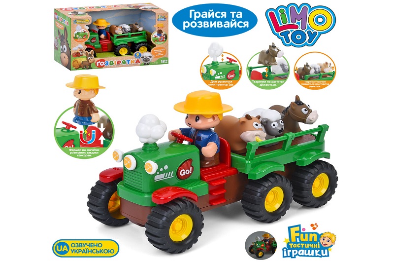 Трактор M 6303 (12шт) з причепом, 25,5см, музика/звук (укр), світло, їздить, знімна фігурка фермера