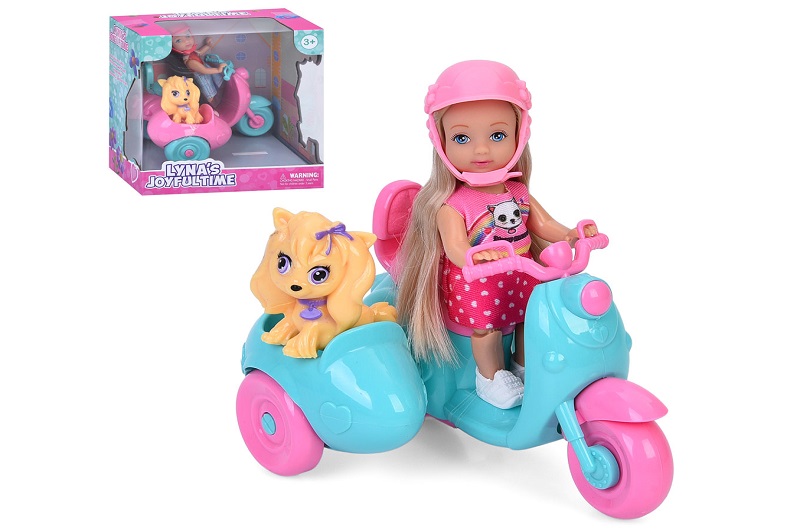Лялька 3808 (30шт) 11см, шарнірні ноги, мотоцикл 14см, собака 5см, 2 види, в кор-ці, 16-17-10,5см