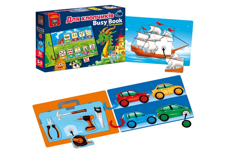 Гра розвиваюча Vladi Toys з липучками. Бізі бук. Для хлопчиків" VT1310-10"