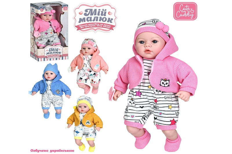 Пупс M 4014-1 I UA (18шт) 45см, м'яконабивний, 4 види, музика/звук (укр), вірш, пісня, 4 види, бат(т