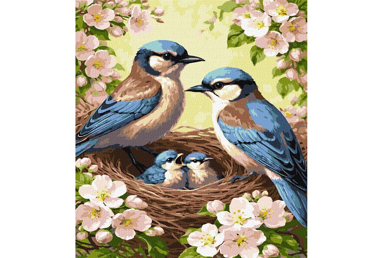Картина по номерах Родина синиць у цвіті" 40х50см KHO6941"