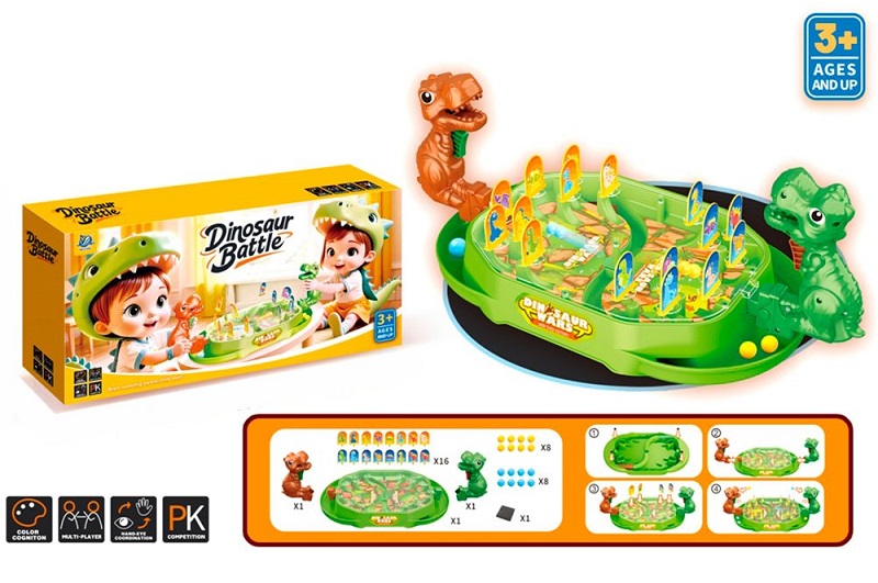 Настільна гра HZ-091 (12шт) Битва динозаврів, ігрове поле 50-22-в20см, кульки, в кор-ці, 48-23,5-8см