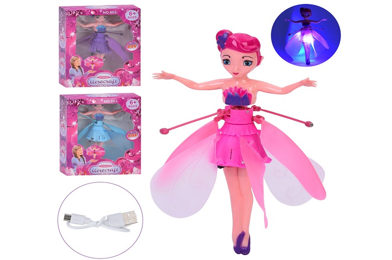 Лялька 802 (60шт) літаюча фея, 19см, акум, реагує на руку, світло, USBзарядне, 3 види, в кор-ці, 16-