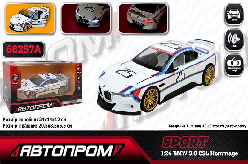 Машина мет. АВТОПРОМ арт. 68257A (12шт/2) 1:24 BMW CSL Hommage R ",батар.,світло,звук,відкр.двері,к"