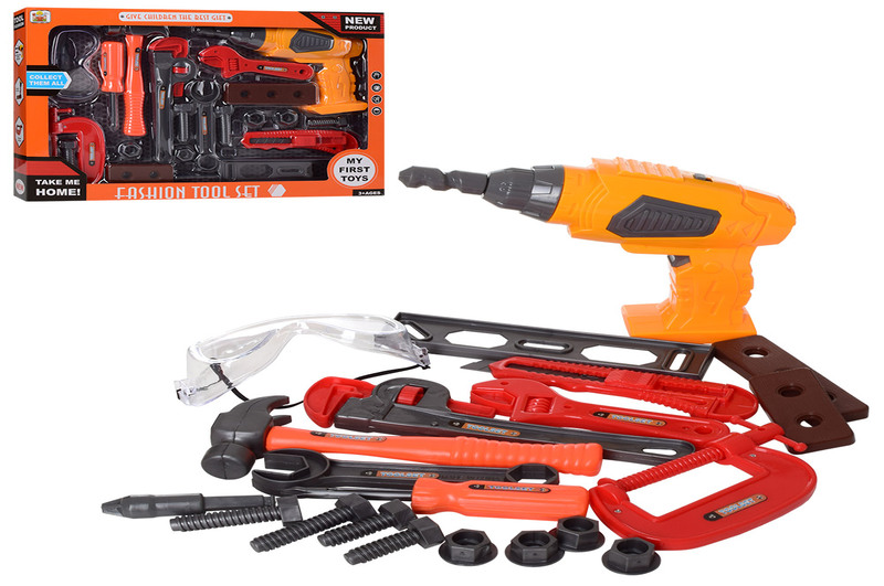 Набір інструментів 36778-77 (18шт) дриль-крутиться свердло,викрутка,ключі,окуляри,бат,в кор,43-30-6