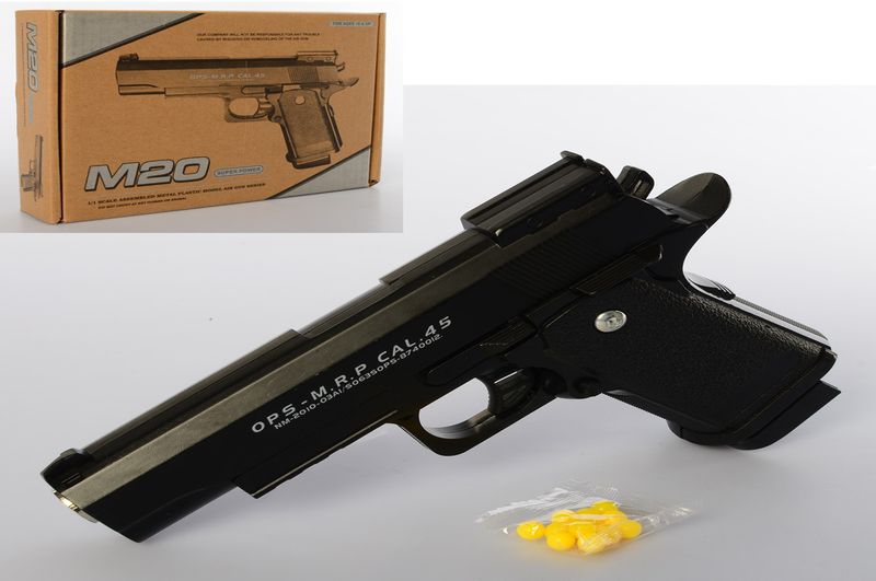 Пістолет M20 (24шт) метал, на кульках, 17см, в кор-ці, 21-15-4,5см