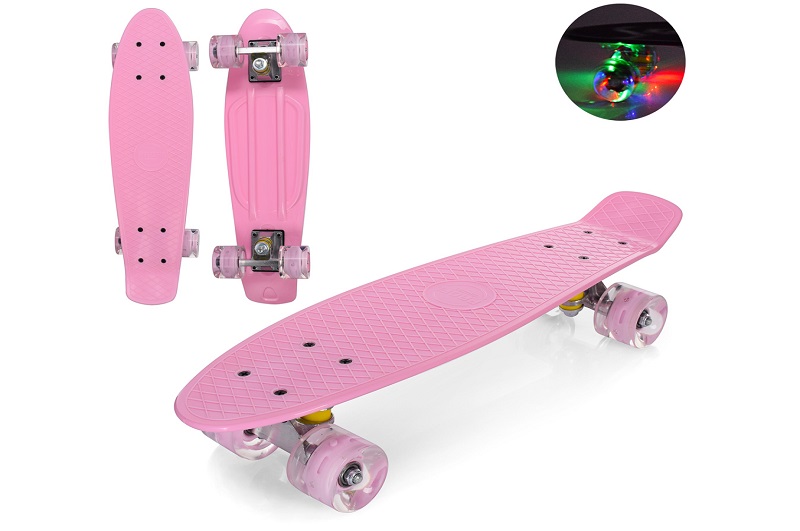 Скейт MS 0848-P1 (10шт) пенні,56-14см,пласт-антиковз.,алюм.підвіс.,колПУ,світ.,підшип.608ZZ,рожев.,р