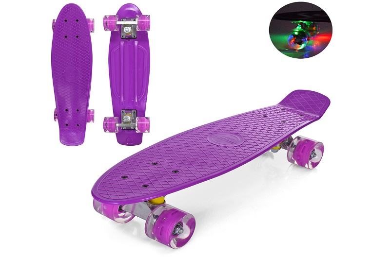 Скейт MS 0848-V (10шт) пені,56-14см,пласт-антиковз.,алюм.підвіс.,кол.ПУ,світ.,підш.608ZZ,фіолет.,роз