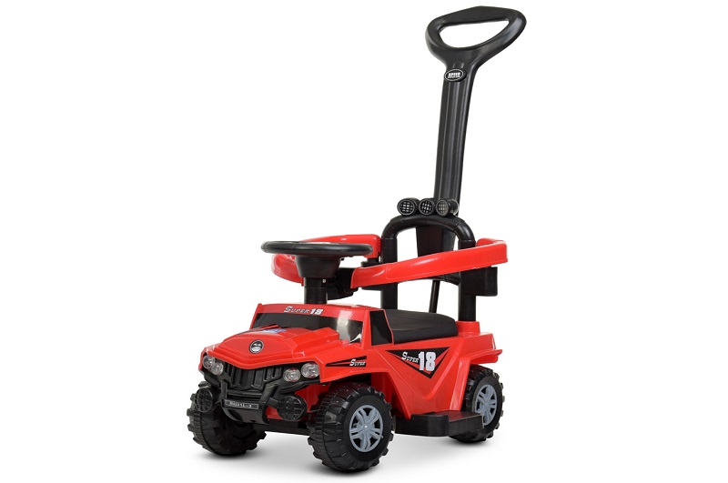 Каталка-толокар M 4231L-3 (1шт) 2в1 (батьківська ручка), муз., світло, шкір.сидіння, бат., червоний.