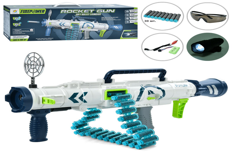 Автомат M619 (6шт) 61см, акум, м'які кулі-присоски 30шт, світло, USBзарядне, окуляри, в кор-ці, 64,5