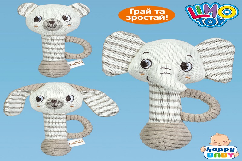 Брязкальце м'яке HB 0097 ABC (36шт) тварина, 17см, пискавка, шуршить, 3 види (слон,ведмідь, заєць),