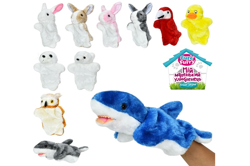 182.20 грнМ'яка іграшка YG0273 (80шт) ляльковий театр, 23-18-11см, 11 видів(заєць, акула,сова, папуга, качка,в