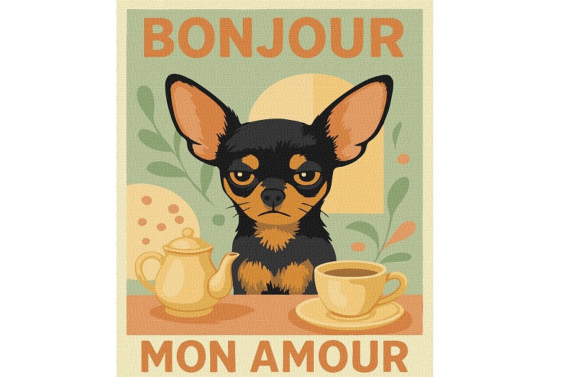 Набір для розпису по номерах Постер. Ранок з чіхуахуа" 30x40см KHO6808"