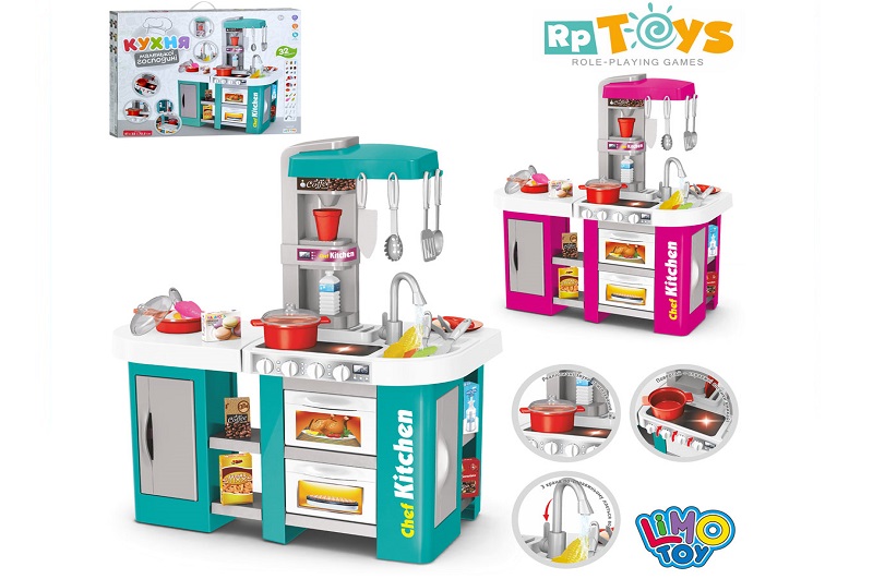 Кухня 922-168-169 (6шт) 61-33-в72,5см, плита, звук, світло,духовка, мийка-ллється вода, посуд, проду