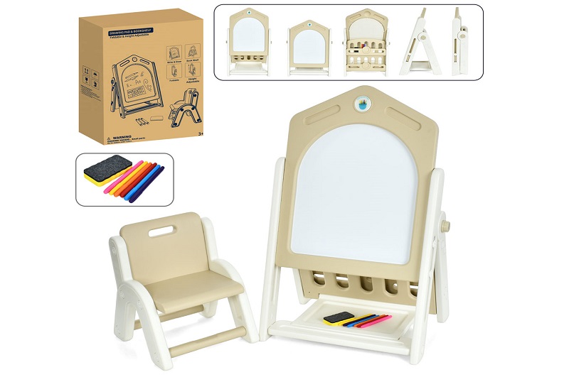 Мольберт Y1029 (1шт) ш62-г45,6-в78,5см/96см, дошка магнитна 42-49,5см, складний, стільчик ш37-г39-в4