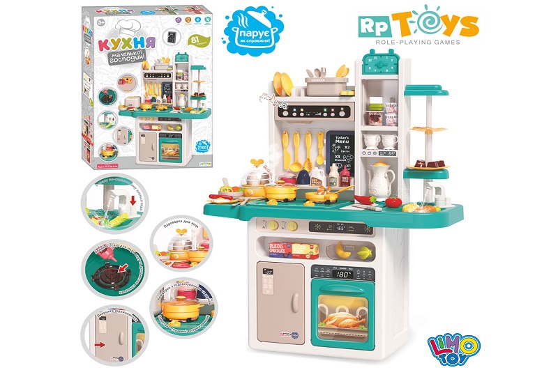 Кухня 889-247 (6шт) 93,5-71-28,5см, плита, мийка-ллється вода(механіч), яйцеварка, пара, звук, світл